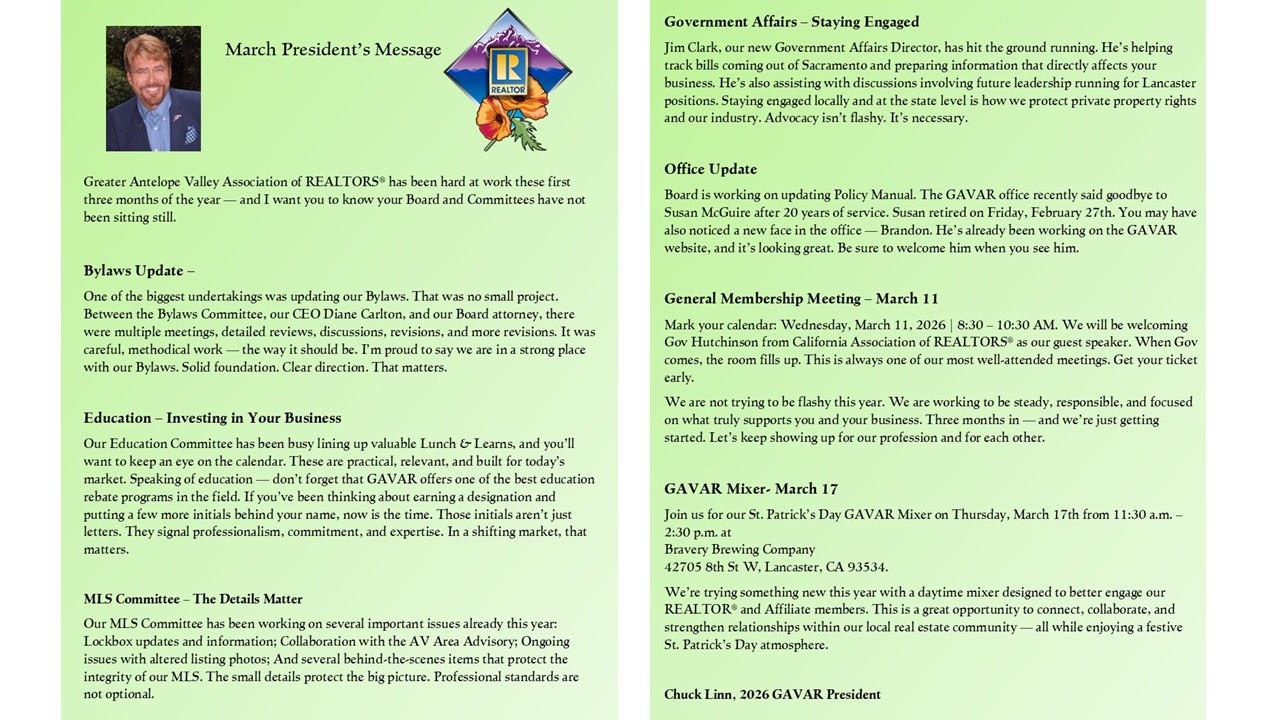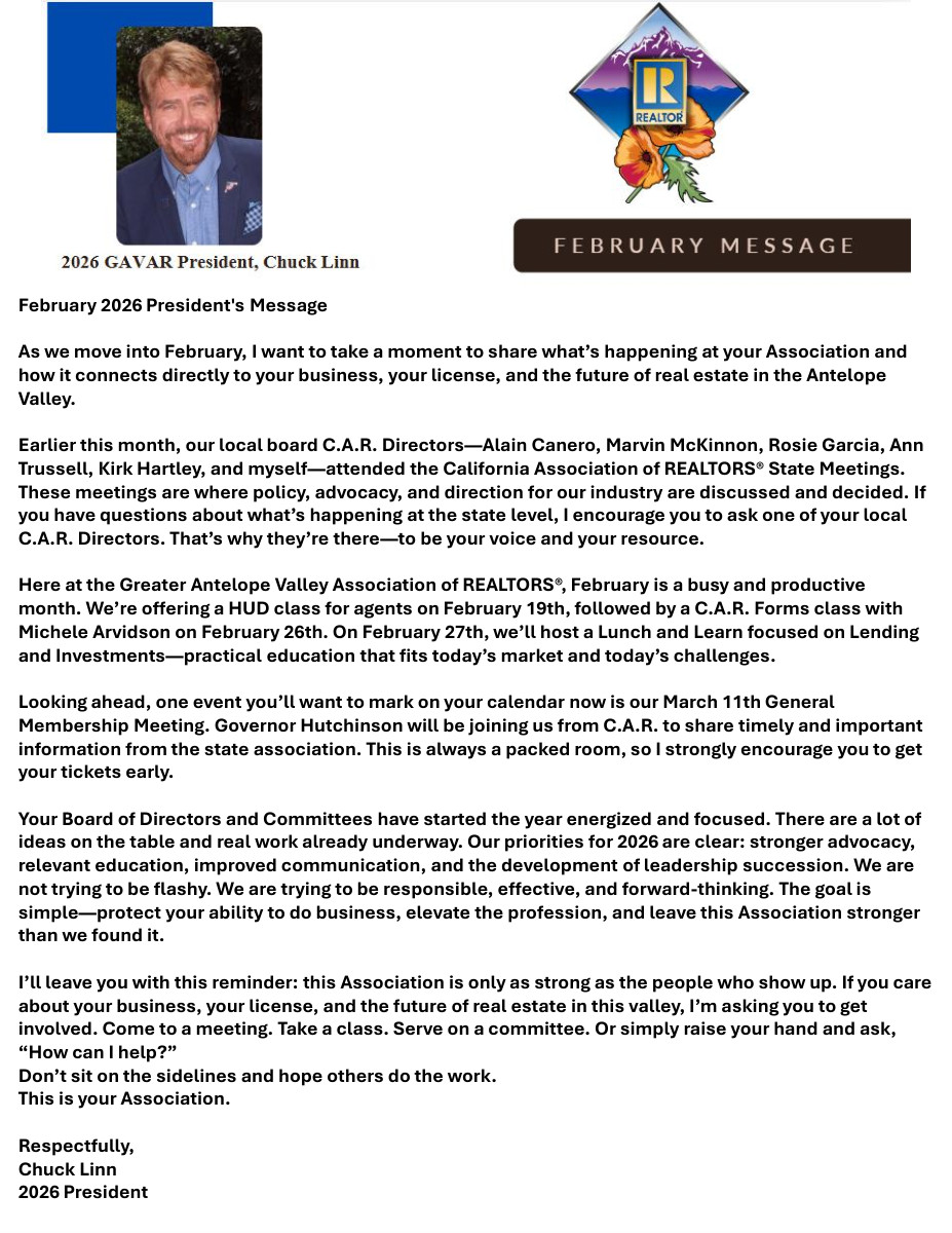 Here's A Message From Our 2026 President Chuck Linn!
